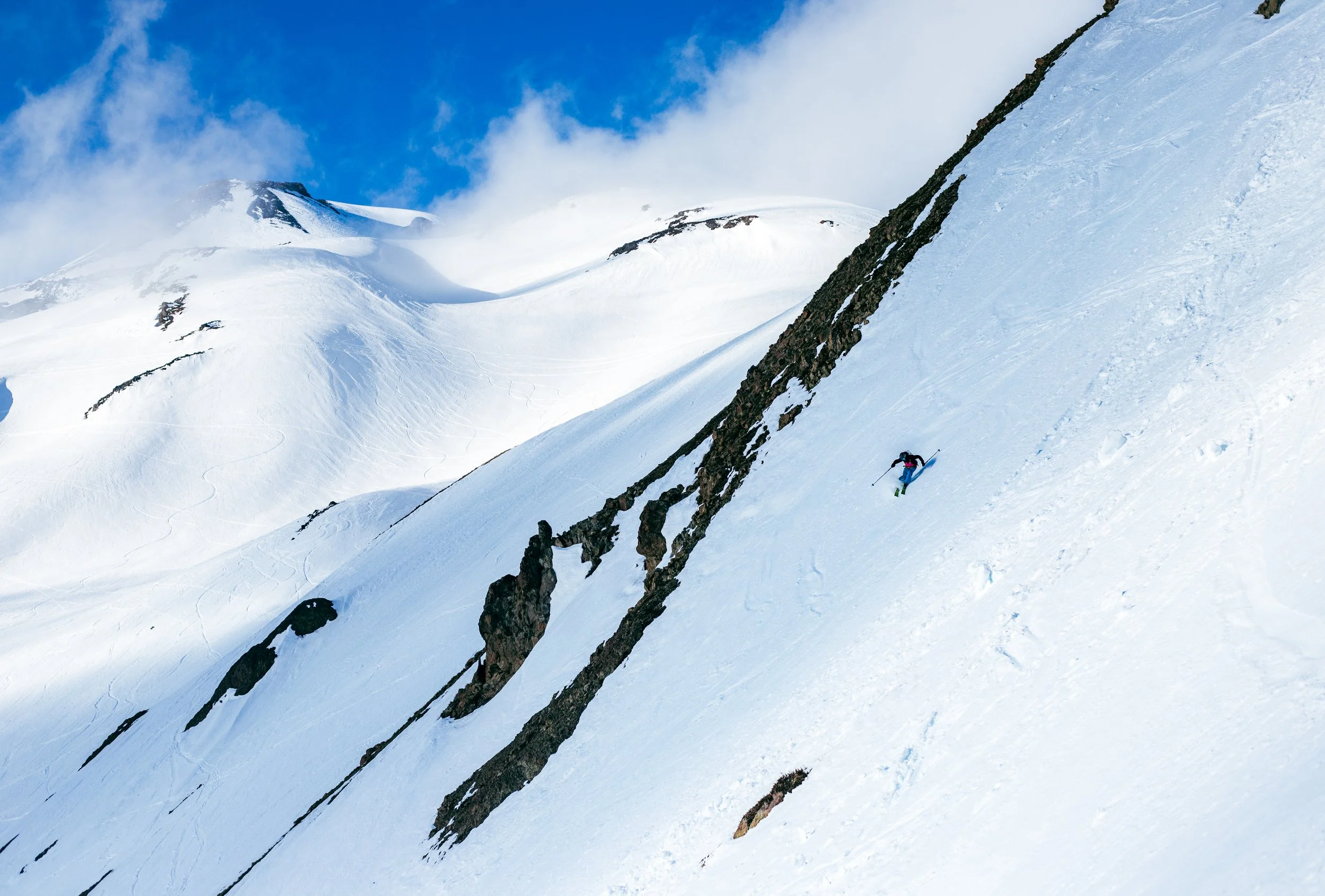 Explore the iconic backcountry of Nevados de Chillán with Chilean freeride legend Chopo Díaz and Silverton Mountain guide Zach Ulmer. Chopo grew up ripping these mountains before rising to the top of the international freeride scene, while Zach brings deep experience guiding extreme terrain in Colorado’s most serious mountains. This trip is all about the people and the place. Expect classic lines, lift-assisted touring, hot springs, high-mountain huts, authentic asados, incredible food, and cozy lodging.